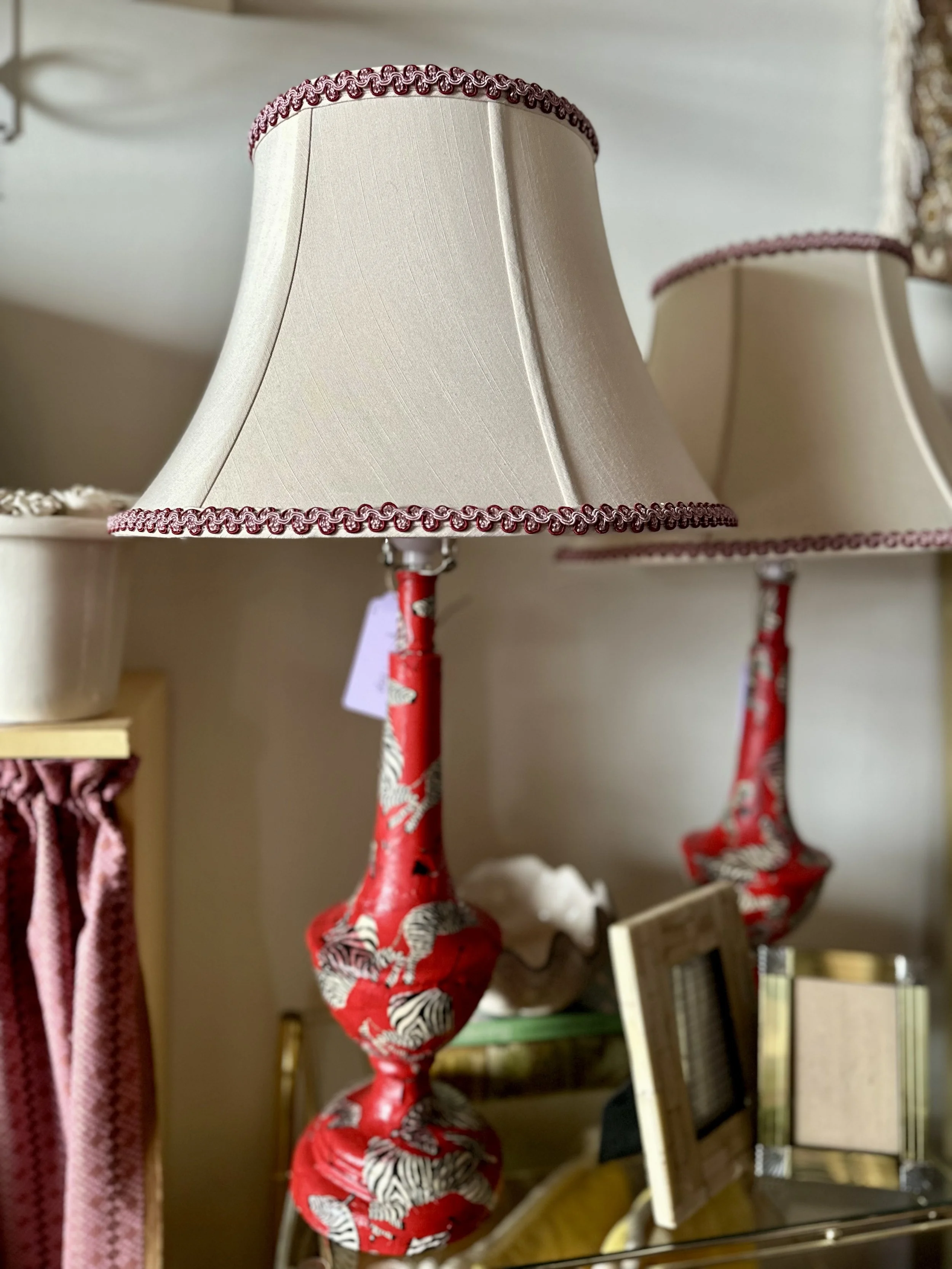 Categories: All Walls Furniture Lighting Objets Pillows All / Iconic Zebra Lamp(s) $135.00 Scarlet Court Table Lamp $120.00 The Wildflower Lamp $160.00 Papillon Lamp $150.00 The Homestead Lamp $175.00 The Oxford Blue Lamps (Pair) $350.00 The Bloom Lantern $250.00